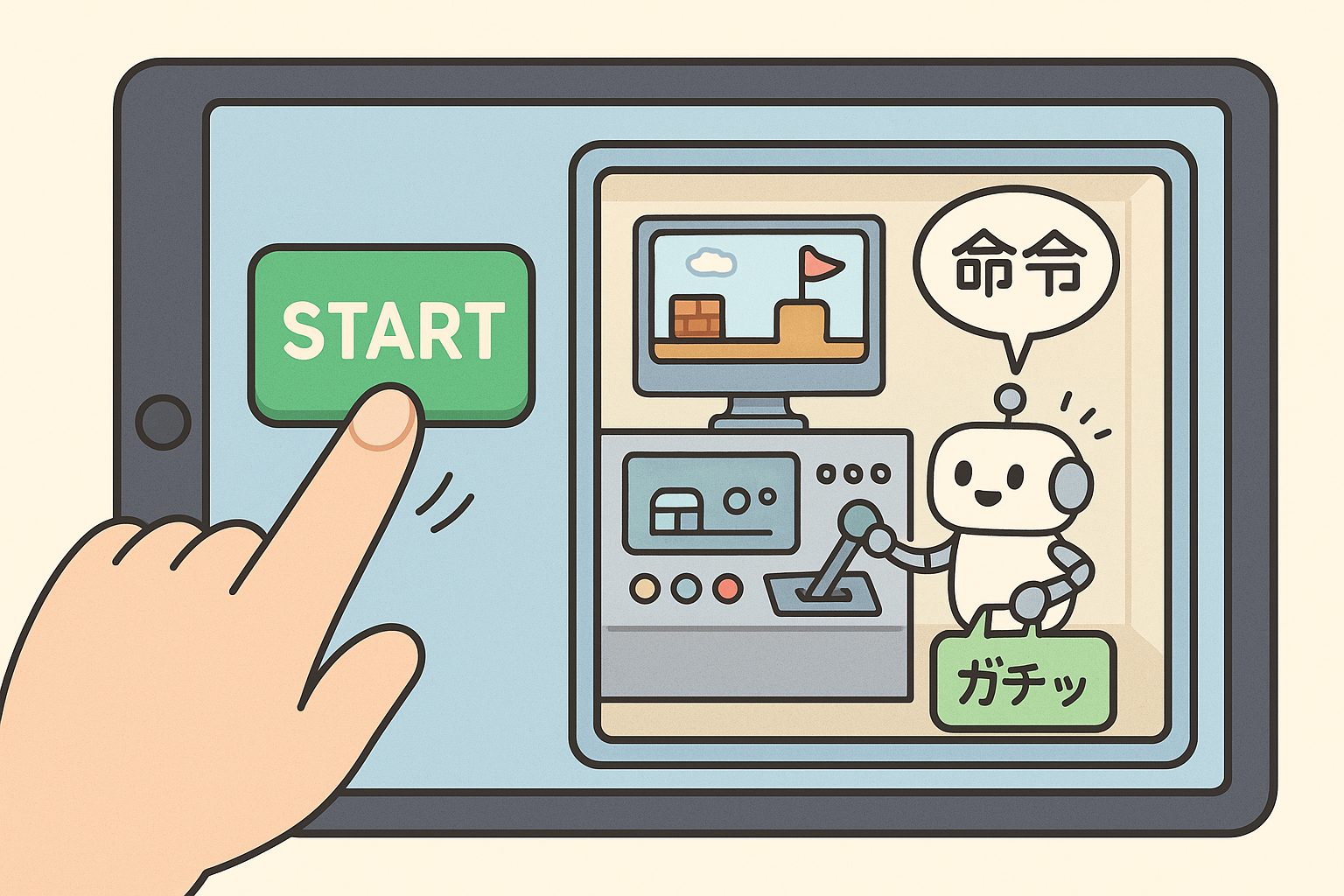 - 🎮 ゲームのスタートボタン → 「ゲームを始める」という命令